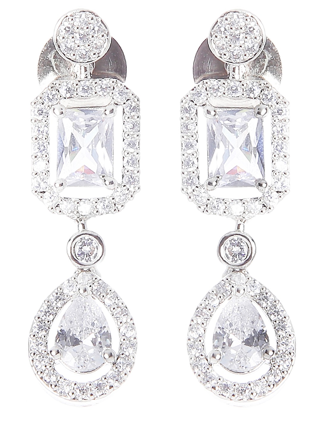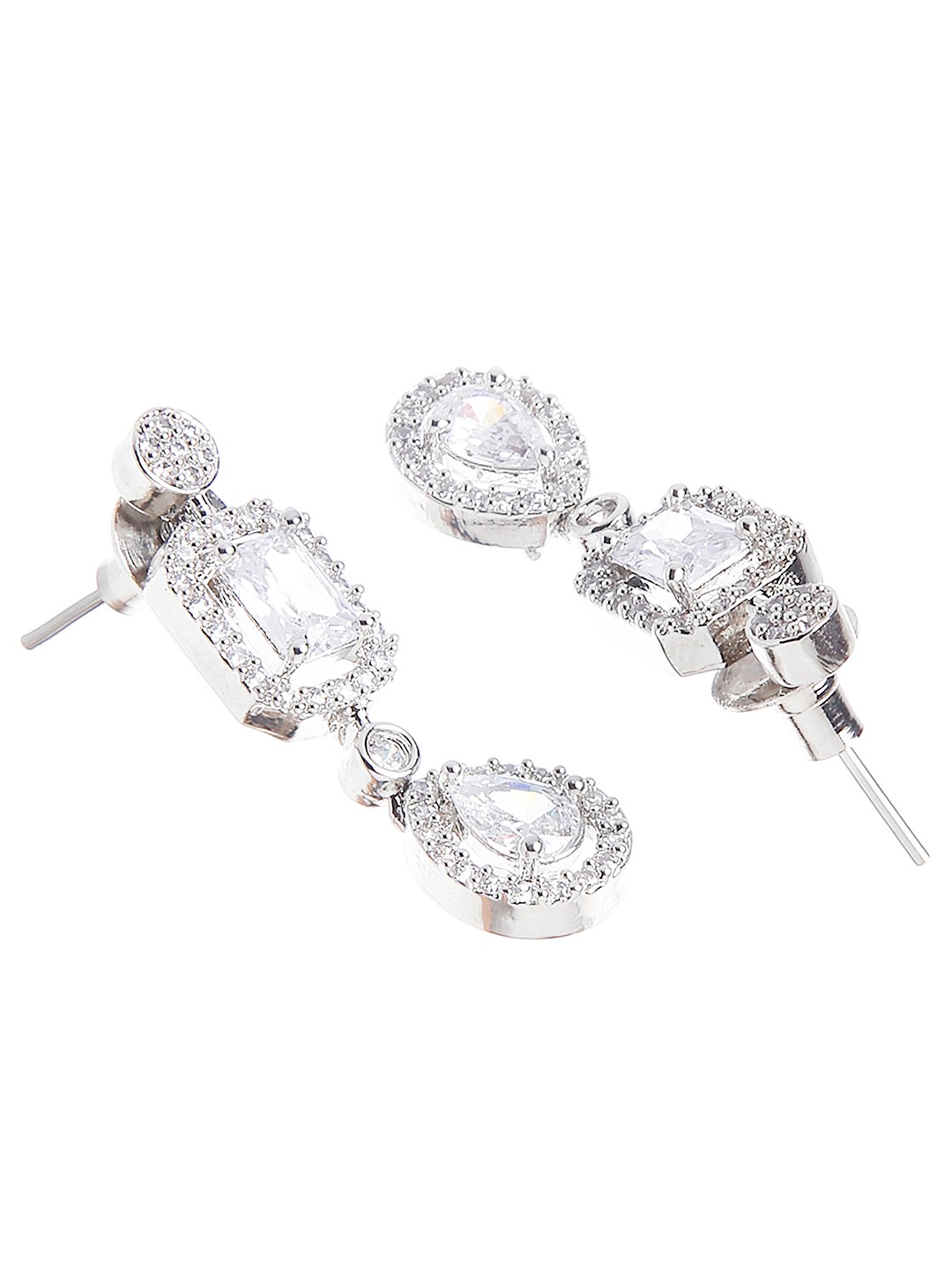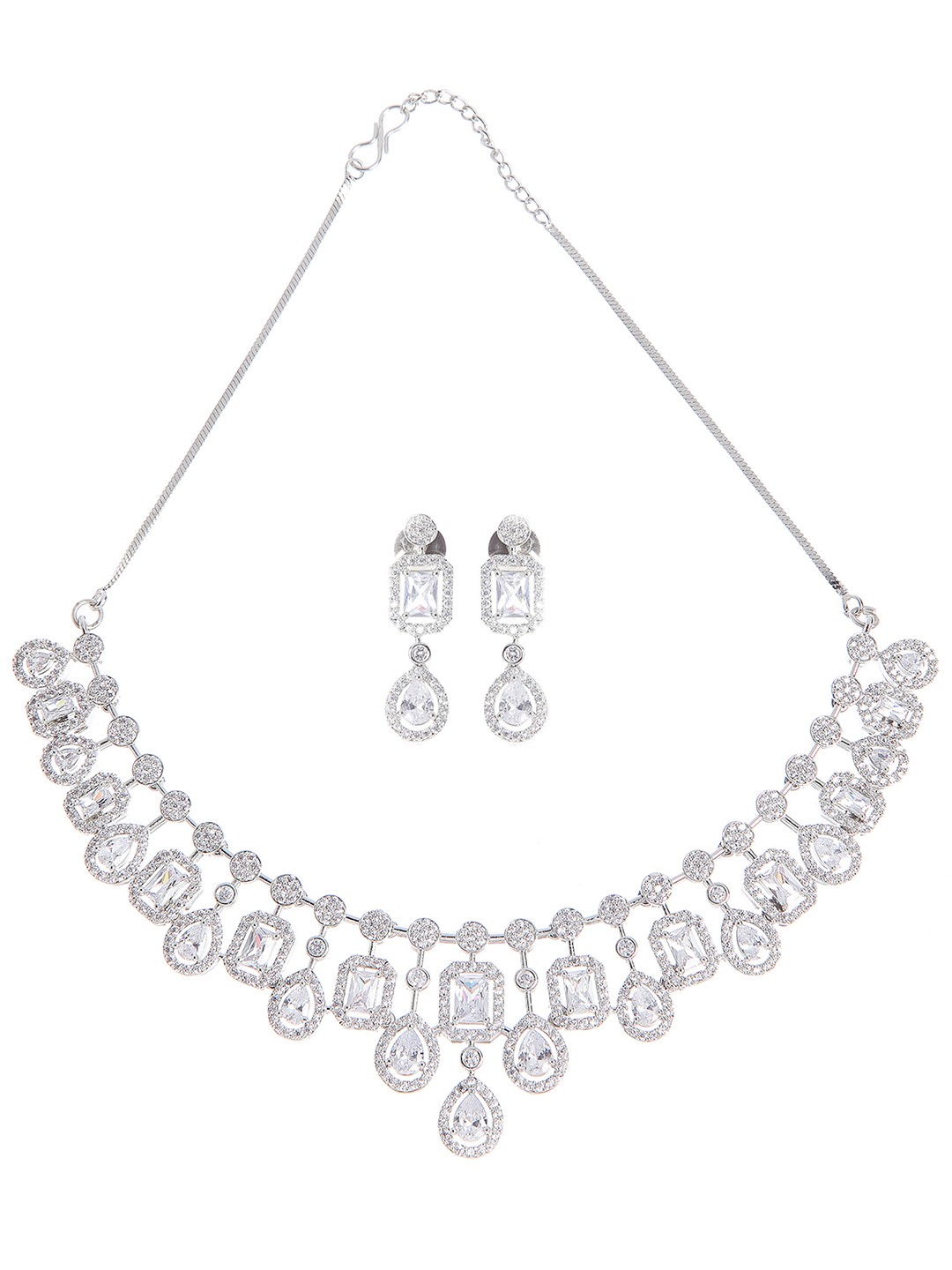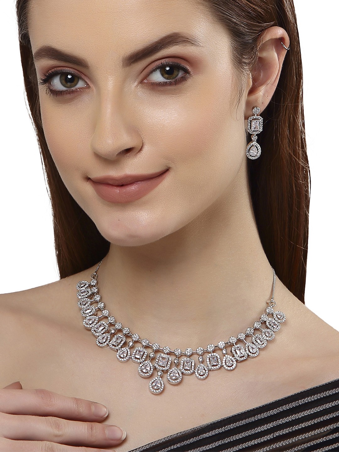 KARATCART Silver-Plated White American Diamond & Cubic Zirconia Studded Handcrafted Jewellery Set